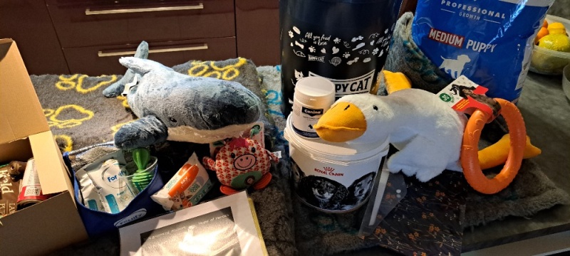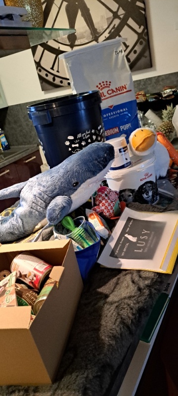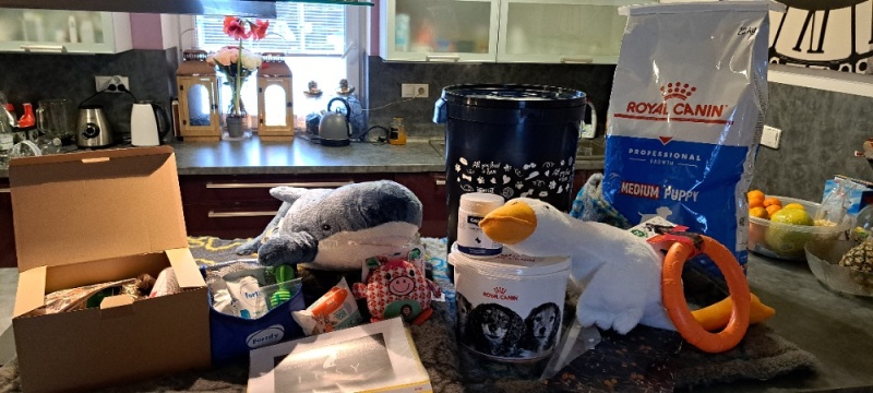 První misi jsme zvládli se ctí… všichni jsou doma… rodiny, které mi daly vale ve financích… zde měly nachystané 20 kg krmení Royal Canin… Gag Canina na klouby (rodiny si zaplatily), my díky nákupům a spolupráci jsme pro ně měli balíčky od FORTIFY, SAM'S FIELD a hlavně ROYAL CANIN (granule 1 kg a 3 kg, paštiky, sáčky, vzorky, kousátka, termotašky a kyblíčky)… koupili jsme jim velké drybed deky… rodiny i přikupovaly až 3 kusy… velkou plyšovou husu a velkého žraloka, prasátko… velký puller… dále jsme jim zařídili díky salonu Luccy 30% slevu na grooming v salonu, hračky… kousadla, samozřejmě prášek na odčervení, euro pas… a velké barely, které jsem koupila od Happy Dog, aby vše měly, jak odvézt…